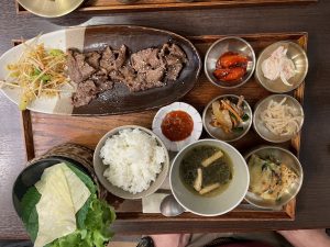 あと「和牛プルコギグリル焼き定食」、飲み物は梨ジュースとボンボンジュース(ぶどう)。