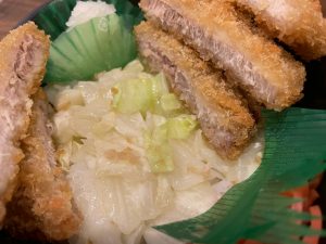 カツとご飯の間には茹でたキャベツが敷かれていました。野菜が摂れるのも嬉しい。