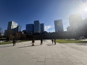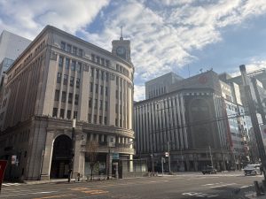 兜町の東京証券取引所の前も通りましたが、1/17現在は日経平均・TOPIXともにかなり高騰しておりますが、