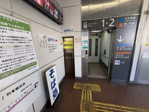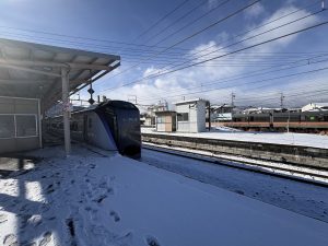 塩尻駅では立ち食いそばが改札内からも使えるお店があり、雪が降っていて寒かったですが温まりました。