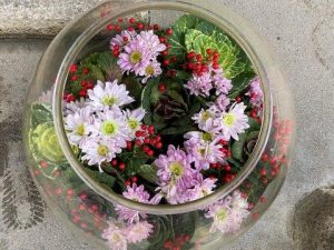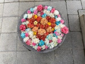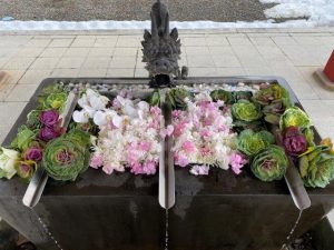 北門にも花手水が奉納されていて、こちらもたくさんの美しい花を見ることができました。