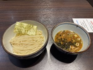 こちらのお店の麺は中太麺でもっちり。食べ応えがあります!つけ汁も少し酸味のある味で、淡麗であっさり系。