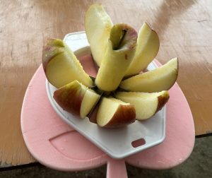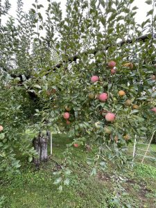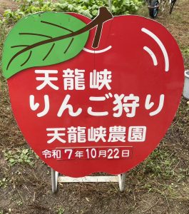 10月22日、曇天だけど平日なら空いているかなと高速に乗り「天龍峡りんご農園」へ。