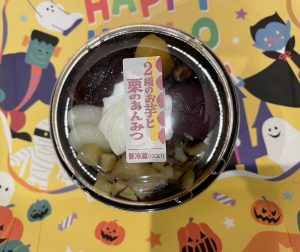 紅いも、紅はるか、栗の甘露煮、塩豆、白玉団子、そしてホイップクリームと贅沢なあんみつ。