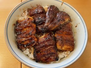 関西風の焼きで、浜松のうなぎと比べると味付けも甘味より少し塩味を感じる、中津川で食べるうなぎのタレに近い。