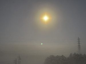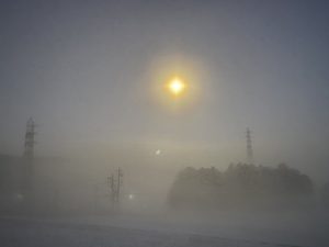 ...と、その霧の中、2月2日「スノームーン」満月の翌日なのにまんまるのお月様が輝いている。