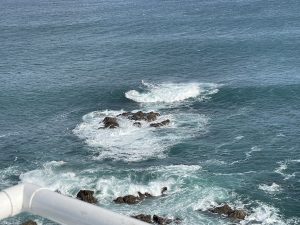 強風だったため灯台から見た海は、波しぶきが激しくて吸い込まれそうな怖さでしたが、絶景に感動しました。