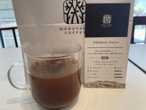 途中にある丸山珈琲で特別な珈琲「アグロタケシ ゲイシャ」をいただく。