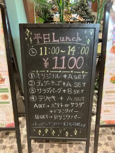 ランチタイムに限りお得なセットメニューあり。しかもセットでドリンクバーで1,100円(税込み)