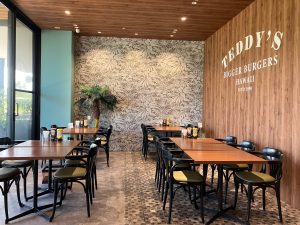 肉厚ビーフにスライストマト、シャキシャキレタス。これにてりやきの甘めのソース。