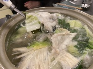 そしてメインのお鍋。ふぐの身も凄く沢山あって贅沢。ダシがどんどん出てスープも凄く美味しい。
