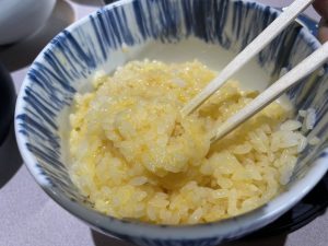 もう1種類は自家養鶏場で採れた卵かけご飯。