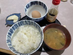 新鮮卵を卵かけご飯で食べるって贅沢感ありますよね。みそ汁も美味しかったー。