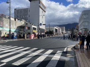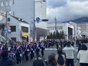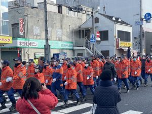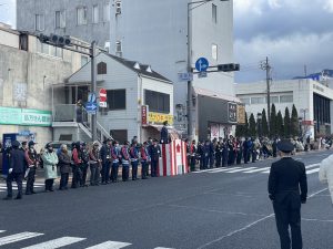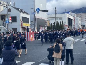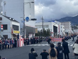 12時に小栗市長が登壇され、消防団の方が目の前を行進していきました。