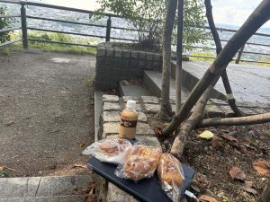 黄檗駅の近くの(中路ベーカリー)さんでお昼のパンを購入していたので展望台でランチを頂きました。